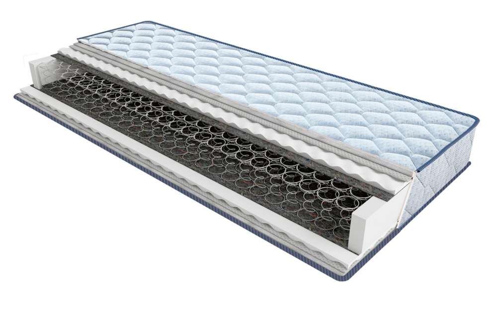 Наполнение: пружинный блок Мульти Боннель (150 шт/м2), пена с массажным эффектом, термопрессованный войлок, жаккардовый чехол