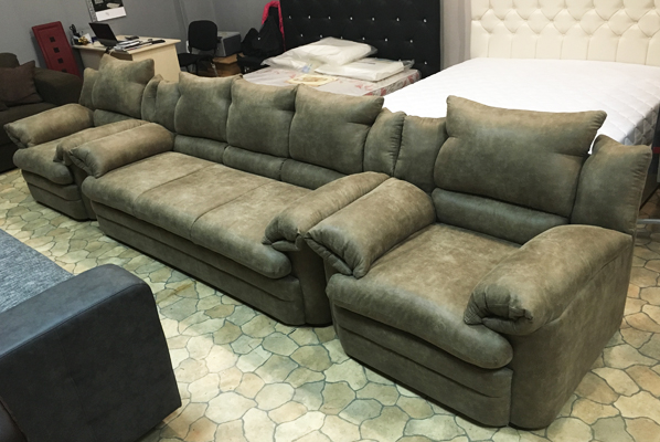 Размеры габаритные: диван — 2100*950*900, кресло — 1100*950*900